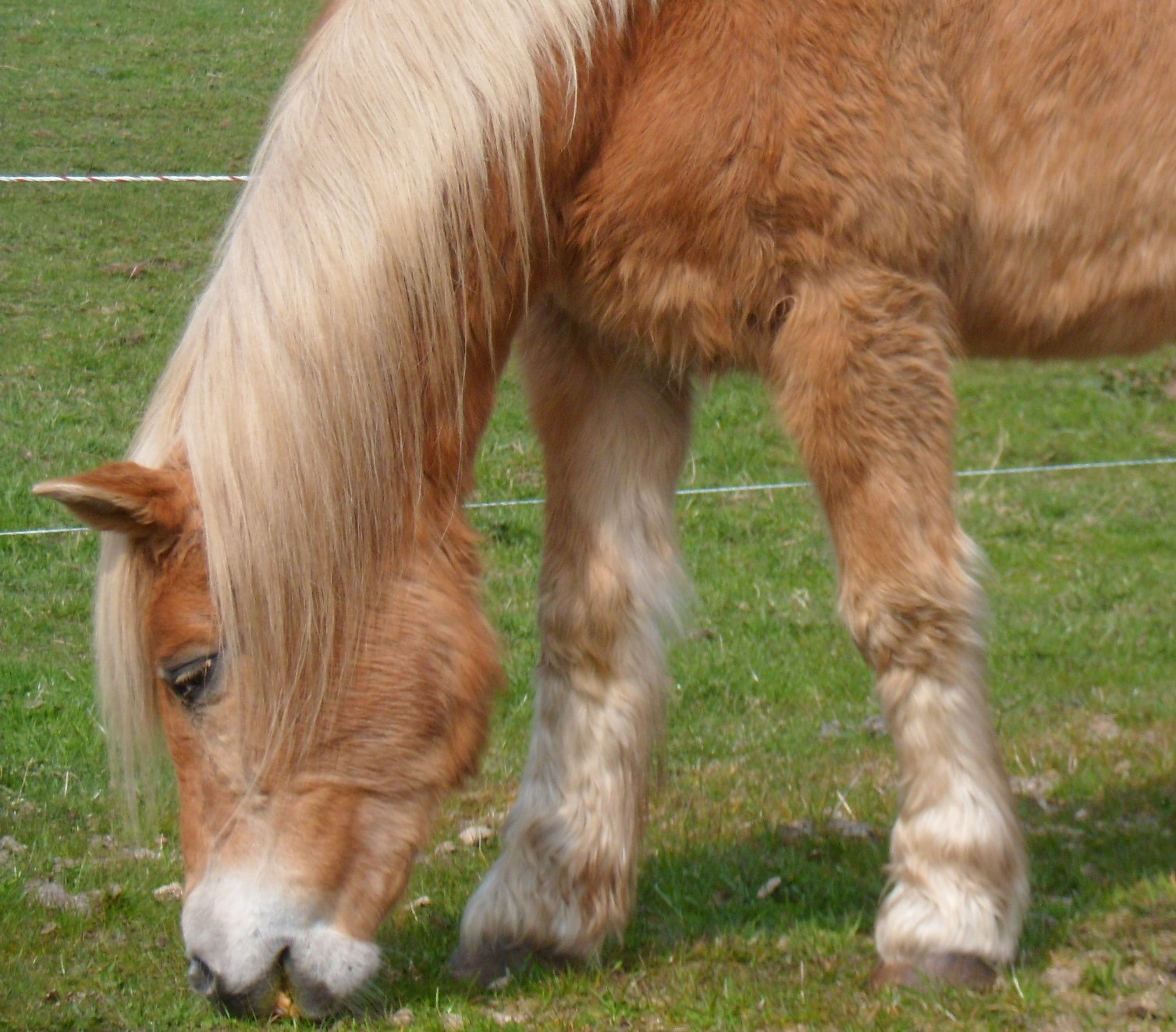 Die Haflinger Stute Maika wurde monatelang in einem dunklen, verschmutzen Stall gehalten. Die Box wurde nicht gemistet, Futter gab es nur selten und nicht genügend. Sie kam unterernährt, mit Herzfehler, starkem Parasitenbefall, Sommerekzem und panischem Blick zu uns. Außerdem leidet sie unter einem leichten Dampf, einer verschleppten Hustenerkrankung. Dadurch wurde ein Teil der Lunge geschädigt, weshalb sie schwerfälliger atmet, vor allem bei Hitze oder bei stark fliegenden Pollen. Innerhalb weniger Wochen nahm Maika an Gewicht zu und die Parasiten verschwanden.
