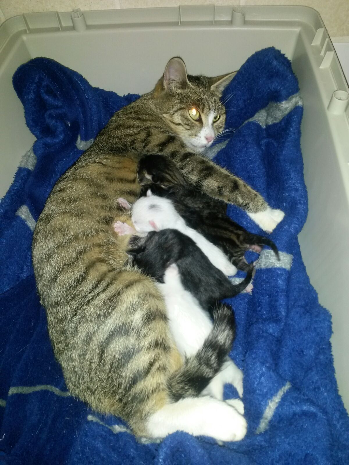Wir freuten uns gerade über die guten Vermittlungszahlen und hatten sogar eine komplette Box leer, als wir wieder trächtige Katzen bekamen.