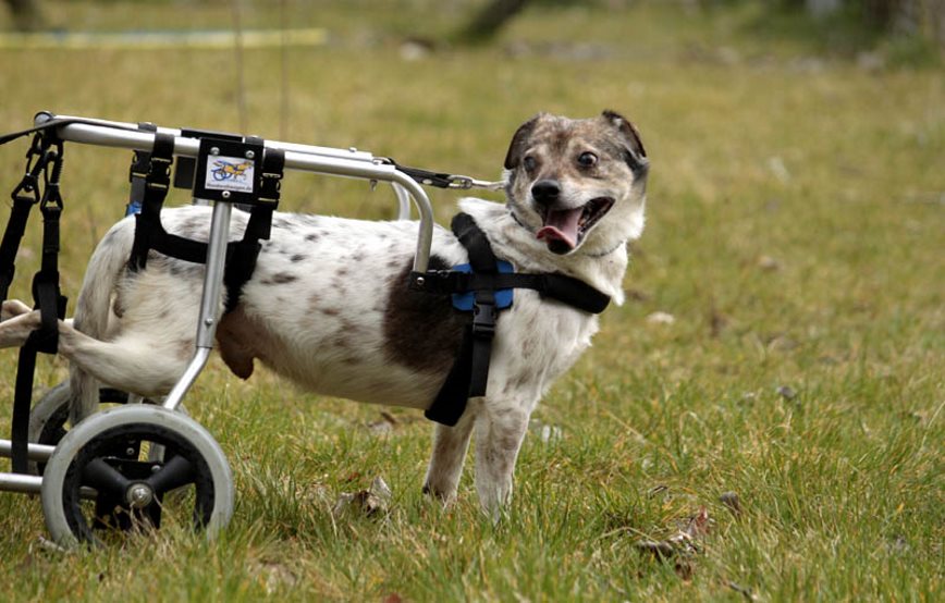 Beim Tierarzt stellte sich dann heraus das Mischu eine gravierende Wirbelsäulenverletzung hat und er nie wieder laufen kann. Mischu machte uns sofort klar, dass er Leben will, denn seine Lebensfreude war und ist einfach zu sehen. Er gewöhnte sich schnell an seinen neuen Rolli und macht damit seitdem die Gegend unsicher für ihn gibt es kein Hindernis.