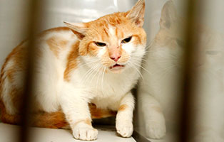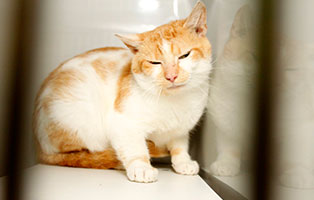 Der hübsche Kater Floffy wurde von seinen Besitzern zusammen mit anderen Katzen beim Umzug einfach zurückgelassen. Hungrig und einsam trieben sich die Katzen dann in der Nachbarschaft herum. Zum Glück wurden wir informiert und Floffy und seine Kumpels kamen zu uns ins Tierheim.