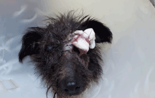 Gwennys Auge wurde entfernt. Sieht noch gruselig aus, ist aber alles gut gelaufen. Wir bedanken uns bei allen Spendern. Insbesondere bei Inga, die eigentlich mit Ihrer Patenschaft das Ticket für einen Polenhund übernehmen wollte, der aber schon ein Ticket hatte. Sie hat sich dann für Gwennys OP Kosten entschieden.