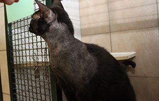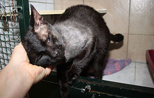 Der pechschwarze Kater Lucky wurde bei uns abgegeben. Angeblich pinkelte der ca. 2 jährige Kater in der Wohnung überall hin. Die Frage, ob Lucky kastriert ist, wurde verneint. Er hätte einen Innenhoden und die Kastration wäre dadurch so teuer.