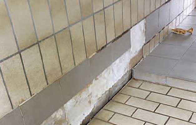 Aufgrund eindringender Feuchtigkeit fallen die Fliesen in den Hundezwingern von den Wänden und Schimmel breitet sich aus. Auch der angrenzende Tierarzt-Raum ist mittlerweile befallen. Hinzu kommt, dass die Zwinger für eine artgerechte Gruppenhaltung und auch für die Haltung größerer Hunde viel zu klein sind.