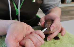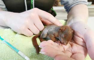Das kleine Eichhörnchen hat die Nacht überlebt und unsere Mitarbeiter tun alles, damit es dem kleinen gut geht.