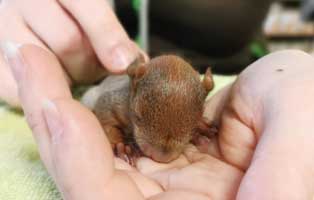 Neuzugang – wurde völlig unterkühlt in einem Mauseloch im Garten gefunden. Keine Kobel in der Nähe sichtbar. Hier heißt es Daumendrücken das das Eichhörnchenbaby es schafft.