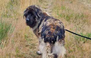 Erinnert Ihr Euch an den Leonberger-Mix der Haus und Hof verteidigt hat und den wir nur mit Mühe bändigen konnten?