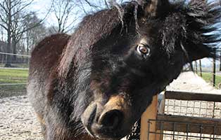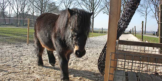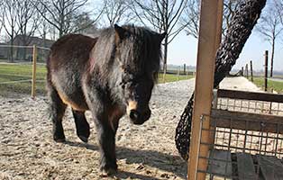 Der pummelige Jameen kam im Januar 2016 auf unseren Hof in Wardenburg. Leider war in seinem Zuhause sein Kumpel Max an Altersschwäche gestorben. Jameen hing sehr an seinem Pferdekumpel, allein zu sein war für ihn eine Qual. Somit bezog er eine gemütliche Box bei uns. Jameen hat leider ein Problem mit Staub, weshalb er hier nur nasses Heu vorgesetzt bekommt. Er durfte mit seinen Freunden im Frühjahr 2017 den Paddock-Trail beziehen. Frische Luft, Bewegung und viel Licht, genau das richtige für unseren Shetty-Mann.