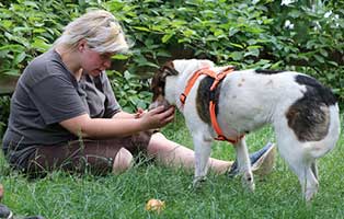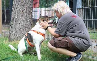 Bobby ist ein grundunsicherer und misstrauischer Hund. Er braucht wirklich Zeit und sehr geduldige Menschen, bis er richtig Vertrauen aufbaut. Und selbst gegenüber seinen Bezugspersonen gibt es immer wieder Situationen, wo Bobby in Panik gerät und aus Selbstverteidung auch vorwärts geht und notfalls auch zubeisst. Bei uns hat Bobby einige feste Bezugspersonen, die er sehr liebt und die über Regelmäßigkeiten ihm einfach Sicherheit geben. Bei allem, was Bobby unangenehm oder zu enger Kontakt werden kann (Tierarzt, Zecke entfernen, Bürsten) braucht Bobby einen Maulkorb.