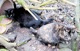 Die so unglaublich scheuen Miezen Emilia und Franzi sind Mutter und Tochter. Man hatte in einer Schrebergarten-Siedlung versucht die beiden massiv zu vertreiben.