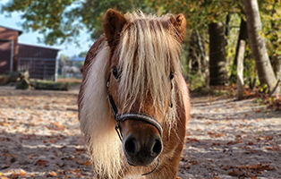 Pauline ist schon eine ältere Shetty-Oma. Pauline leidet unter Cushing (Hormonstörung), wodurch Ihr Körper immer zu viel Cortisol produziert, ein Stresshormon, welches zu schlimmen Entzündungen im Körper, speziell in den Hufen führen kann.
